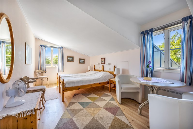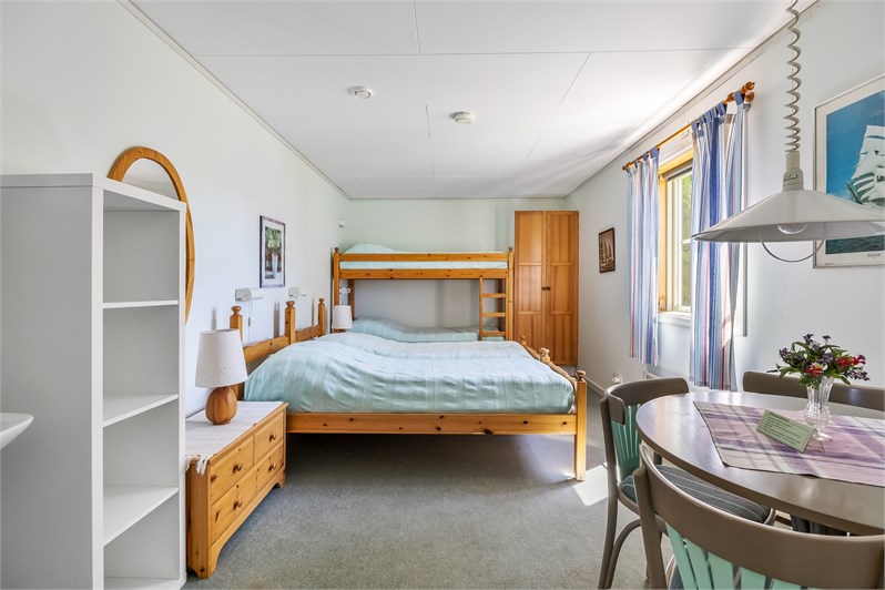 Våra fyrbäddsrum är idealiska för familjer eller mindre sällskap. Här finns gott om utrymme och bekväma sovplatser för alla, samtidigt som rummen behåller en varm och ombonad känsla.